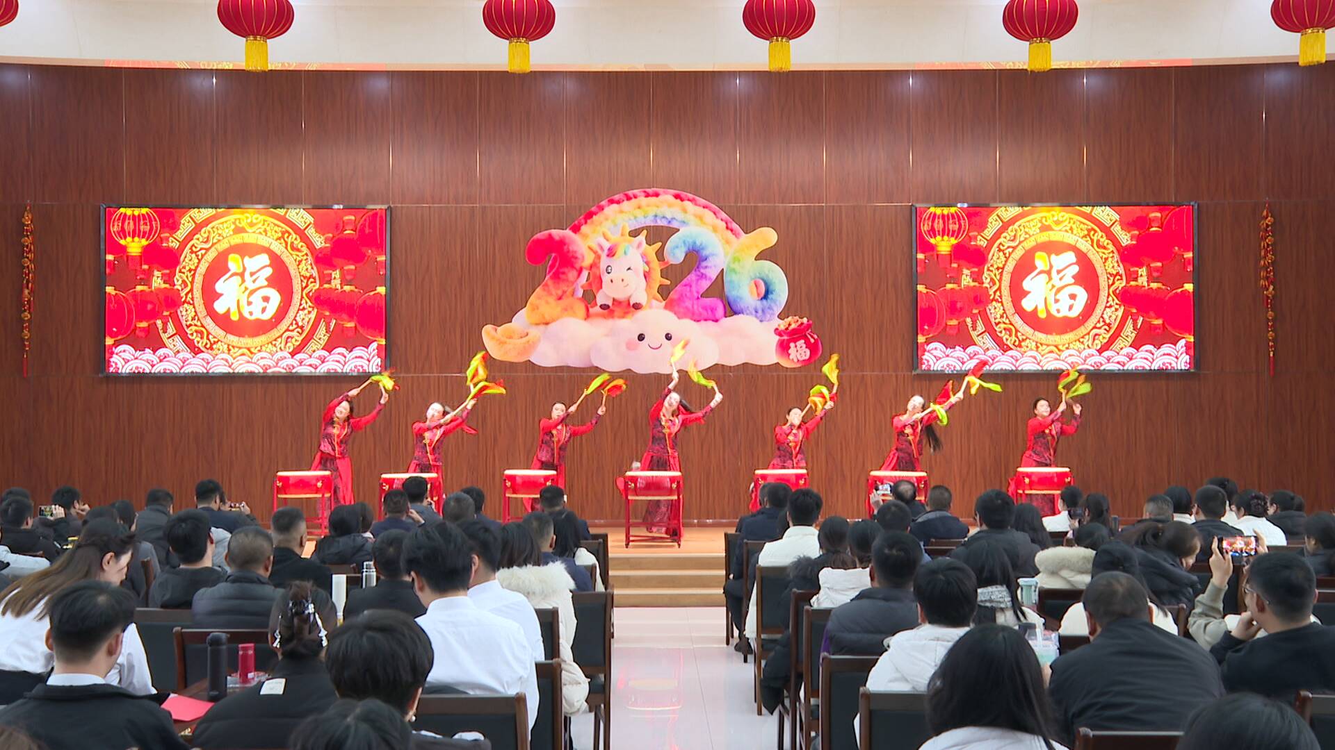 联欢会在自然资源开发公司的鼓舞《开门红》中拉开序幕,铿锵鼓点奏响奋进号角;原创三句半《夸夸咱们大国控》鲜活展现集团年度攻坚成果;《墨舞新程・笃行致远》将书法与舞蹈相融,寄托高质量发展期许;歌伴舞《相亲相爱》《我爱你,中国》彰显家国情怀与团队温情,赢得现场阵阵掌声。